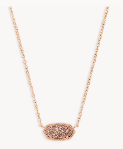A dainty stone and delicate metallic chain combine to create the Elisa Pendant Necklace in Rose Gold Drusy, your new favorite wear-anywhere accessory. This pendant necklace can be paired with any look, providing that extra...