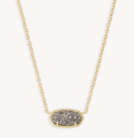 A dainty stone and delicate metallic chain combine to create the Elisa Gold Pendant Necklace in Platinum Drusy, your new favorite wear-anywhere accessory. This pendant necklace can be paired with any look, providing that extra...