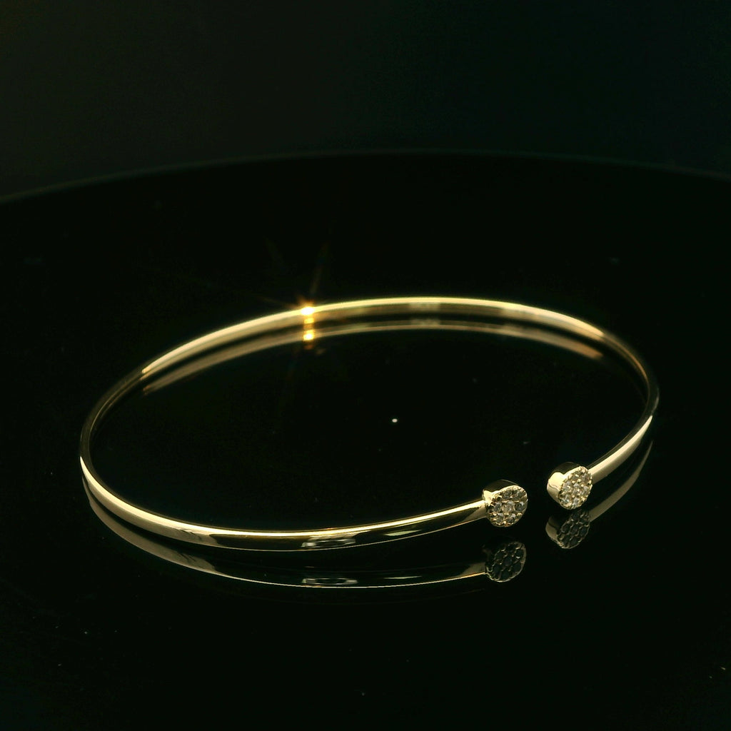 Exquisitely crafted, this 14kyellow gold bangle features delicate .14 cttw diamonds. The brilliant cut and timeless design render this bracelet a versatile piece, ideal for both everyday elegance and sophisticated evening wear. Its sleek composition and expert arrangement add an air of understated luxury.