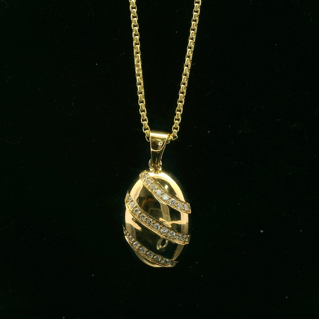 Indulge in the timeless elegance of this 14k yellow gold necklace. A stunning union of classic design and radiant sparkle, the oval-shaped pendant is adorned with round brilliant cut diamonds, adding a touch of luxury to any ensemble. A perfect blend of sophistication and style, this charm necklace is sure to become a cherished heirloom.
