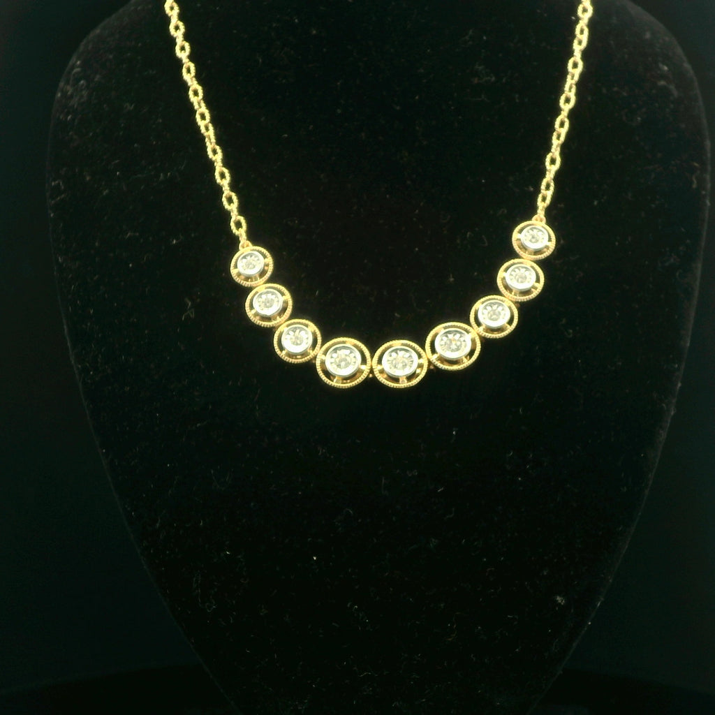Elevate your style with this exquisite .25cttw diamond necklace. The necklace features brilliant-cut, round diamonds set in a delicate 14k yellow gold chain. Each diamond has been meticulously selected for its exceptional fire and brilliance, creating a stunning symphony of light. A timeless design, this necklace adds a touch of luxury to any ensemble.