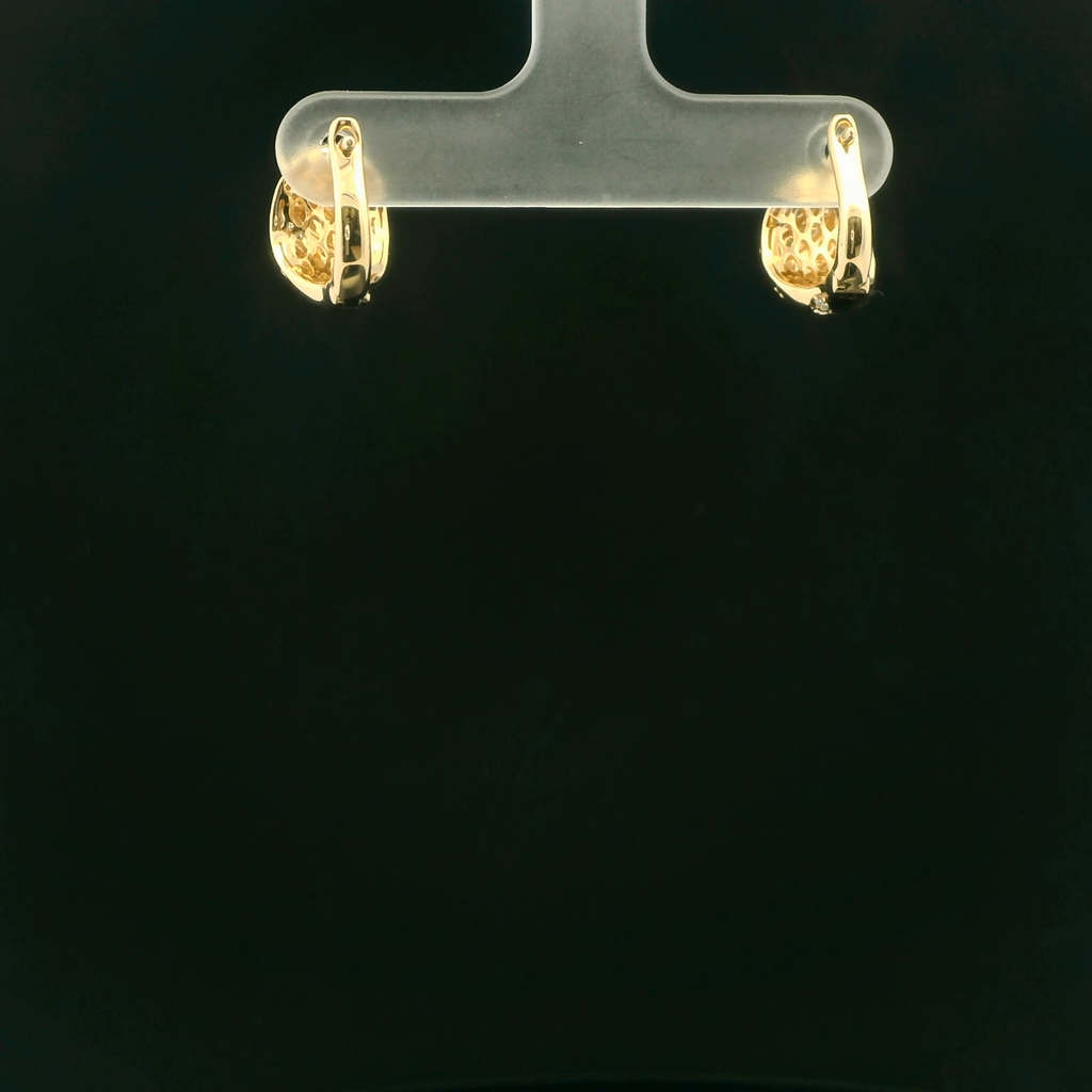 Elevate your style with these 14k yellow gold hoop earrings. The round brilliant cut diamonds add a touch of sophistication and sparkle. These earrings are a perfect blend of classic design and modern elegance.