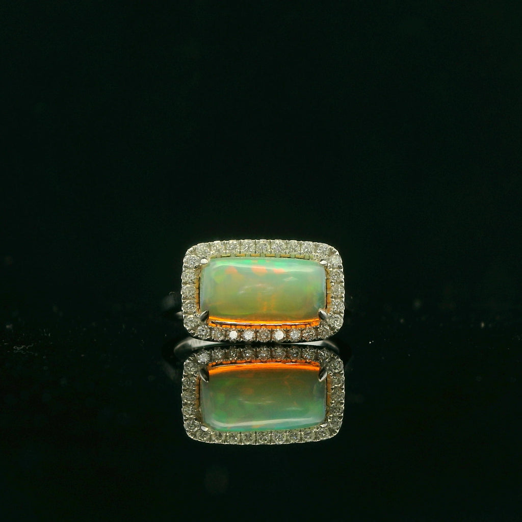 14KW Opal Cushion Ring.31 CTTW Diamonds1.93 CTTW Opal