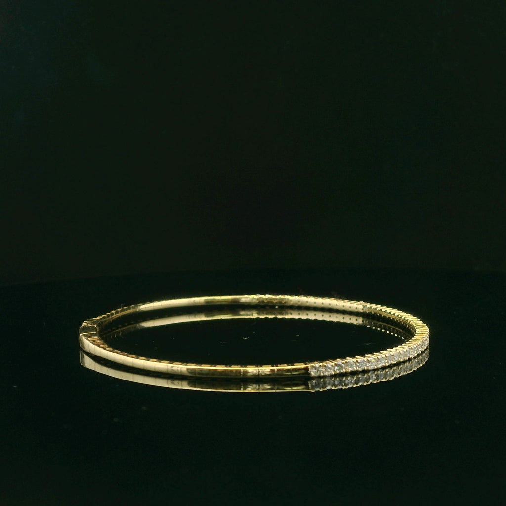 Experience timeless elegance with this flexible tennis bracelet, meticulously crafted in lustrous 10k yellow gold gold. The bracelet features a continuous stream of round cut lab grown diamonds, adding up to 1cttw. A perfect balance of sophistication and understated luxury, this diamond tennis bracelet is an essential addition to any fine jewelry collection.