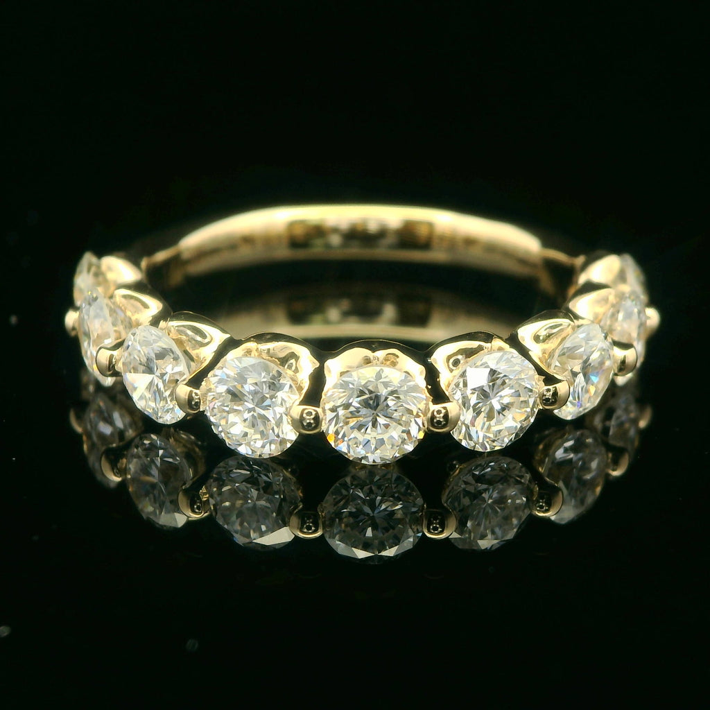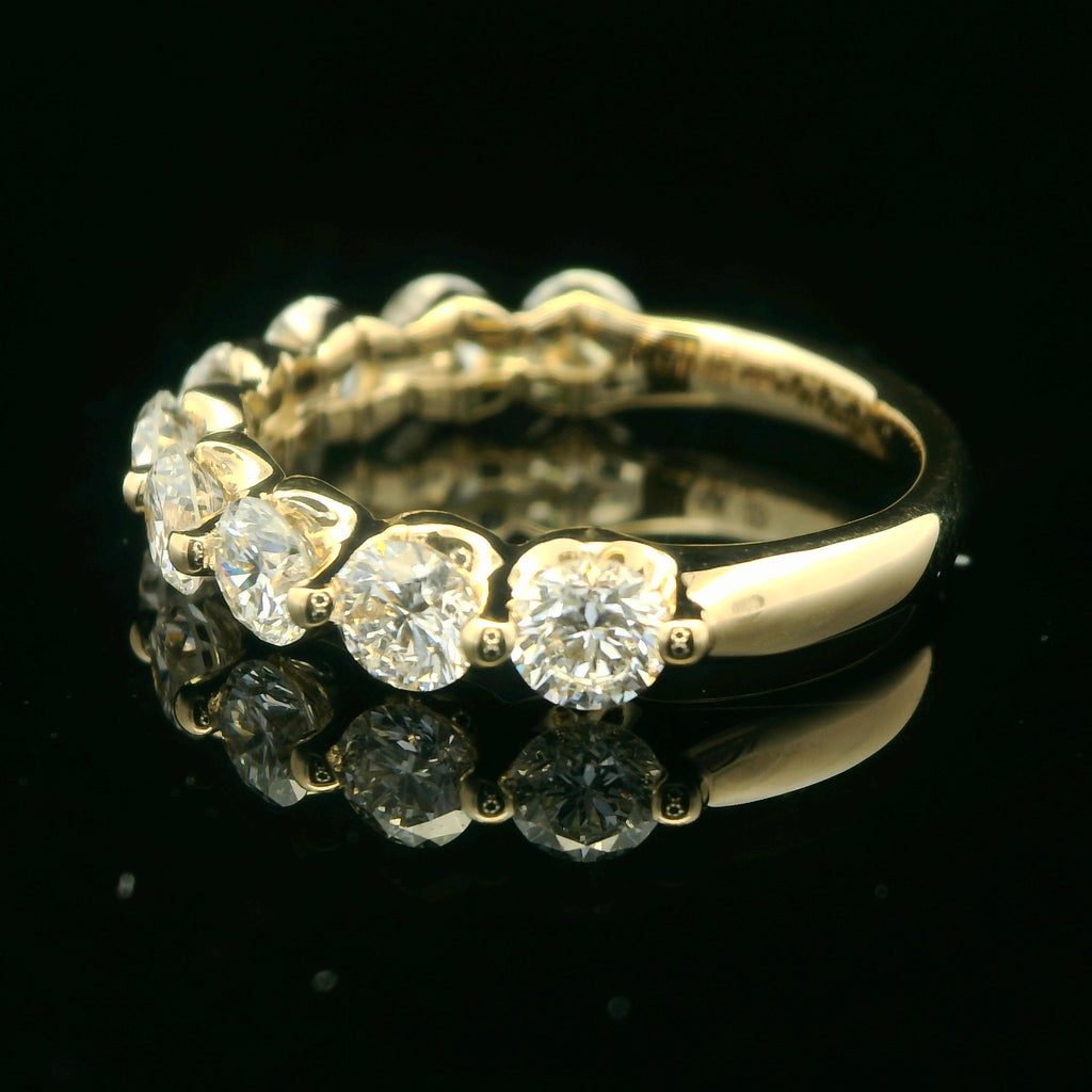 Elevate your style with this stunning 14K yellow gold anniversary ring, meticulously crafted to showcase a continuous row of 1.5 CTTW lab grown diamonds. The perfectly matched round diamonds are securely set, reflecting light from every angle. This timeless design symbolizes everlasting love and commitment, making it an ideal piece for special occasions.