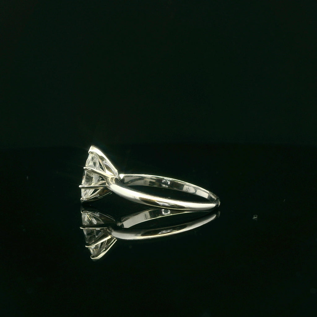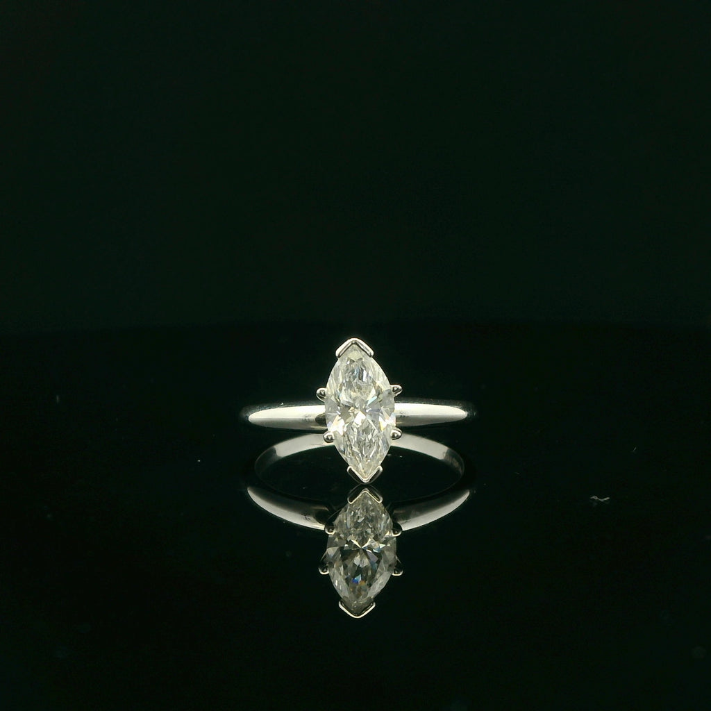 Exquisitely crafted, this solitaire ring showcases a mesmerizing 1.00 ct marquise-cut lab grown diamond, celebrated for its elongated silhouette and brilliant sparkle. The diamond, meticulously cut to maximize light performance, is securely set in lustrous 14k white gold. This timeless design embodies understated elegance and sophistication, making it an ideal symbol of everlasting love.