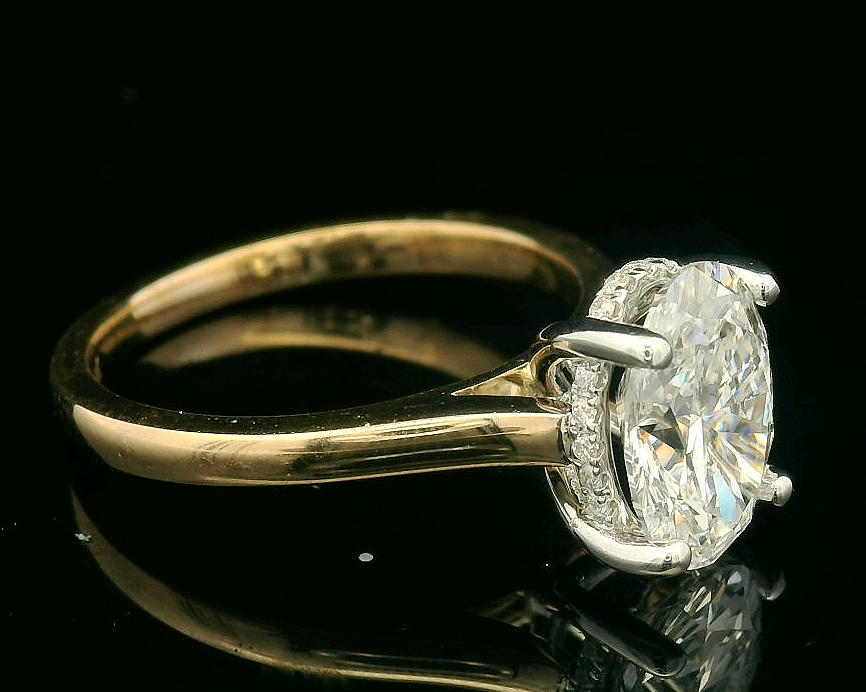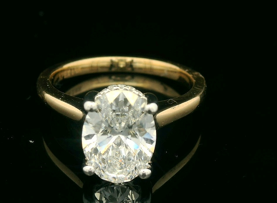 This stunning 2.07ct oval lab grown diamond engagement ring features a brilliant centerpiece that captures the light beautifully. Set in a classic gold band, it combines timeless elegance with modern sophistication, making it the perfect symbol of love and commitment.