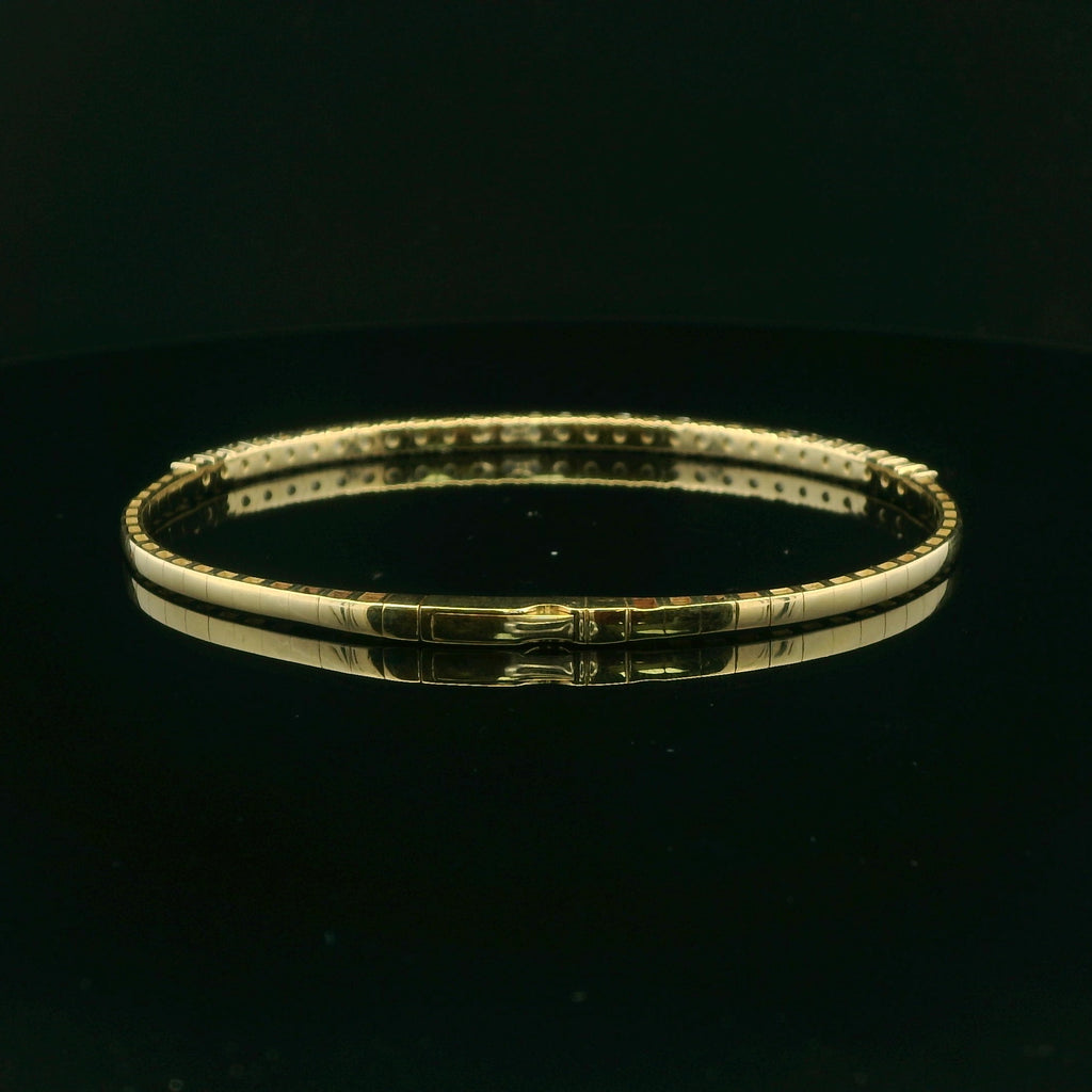 Dazzle with this exquisite flexible tennis bracelet, meticulously crafted in radiant10k yellow gold. 2.0 cttw of brilliant-cut lab grown diamond is precisely set to capture and reflect light, creating a continuous sparkle around your wrist. A timeless design showcasing exceptional craftsmanship and sophisticated elegance.